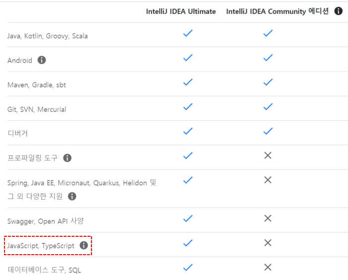 Community 에디션은 공짜이긴 하지만 Vue 나 React 등 Javascript UI 개발이 불가능하다는 치명적인 단점이 있습니다. Vue 나 React 등의 Javascript 기반의 프로젝트를 생성하려면 Ultimate 에디션이 필요합니다. Community 에디션을 사용할 경우에는 Javascript 관련 플러그인이 검색조차 되지 않습니다. 물론 Ultimate 에디션은 상용입니다.