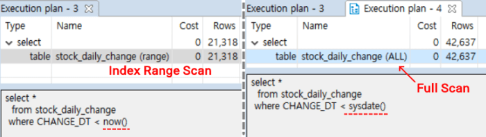 SYSDATE()는 Full Scan을 발생시킬 수 있다