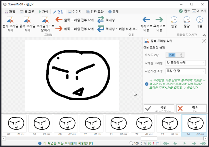 어떠신가요? 화면 스크린을 움짤 GIF 나 동영상 파일로 손쉽게 만들 수 있는 ScreenToGif는 완전 무료이고 간단한 사용법에도 불구하고 파워풀한 기능을 장착한 최고의 화면 동영상 제작 프로그램이 아닌가 생각합니다. 화면 캡처 프로그램 칼무리와 함께 사용해 보시길 적극 추천드립니다. 감사합니다.